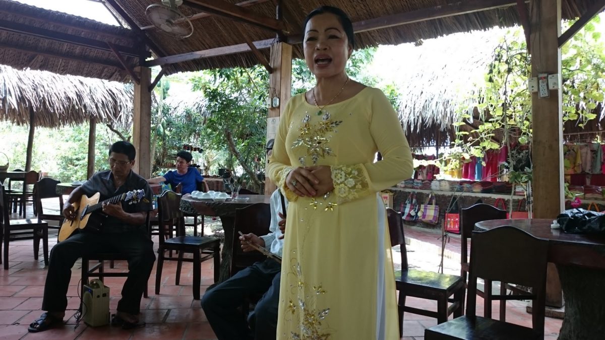 Um 8.00 Uhr sitzen alle im Bus, auf geht´s zum Mekong. Mit einem Motorboot schippern wir zu einem Seitenarm des Mekongs, zum Mekong Delta. Der Fluss ist unglaublich schlammig. Viel Platz zwischen dem Boot und dem Boden des Flusses haben wir nicht. Oh je, hoffentlich bleiben wir nicht stecken. Die Landschaft an den Seiten des Flusses ist einfach nur atemberaubend schön. Einige Zeit später erreichen wir eine Krokodilfarm. Diese Farm wird von einer vietnamesischen Familie betrieben. Wir werden über die Farm geführt und bekommen einige Köstlichkeiten zum Probieren unter anderem auch Schlangenschnaps gereicht. Natütlich muss ich unbedingt diese Sprituose verkosten. Wann bekomme ich noch einmal so eine Gelegenheit? Der Schnaps hat es ordentlich in sich, ein Rachenputzer. Noch so ein oder zwei Schnäpschen mehr und ich kann perfekt vietnamesisch. Wir schauen uns den Inhalt des großen verschlossenen Glases an, ein paar Schlangen, Skorpione, Kakerlaken und reichlich Spiritus und fertig ist das leckere Getränk. Jetzt werden uns noch verschiedene Früchte zum Verkosten gereicht. Diese verzehren wir, während uns verschiedene Musikstücke dargeboten dargeboten werden. Für unsere europäischen Ohren klingt es eher weniger melodisch. Wir haben die Möglichkeit, uns noch ein wenig auf der Farm um zu schauen. In einer Ecke sehen wir einen Affen, der in einem kleinen Käfig eingesperrt ist. Der Affe läuft ganz apathisch im Käfig umher. Das arme Tier ist der Hitze völlig ausgeliefert. Es gibt kein Wasser im Käfig und Metallspitzen ragen in den Käfig hinein. Der Affe könnte sich verletzen, aber kein Mensch kümmert sich um das Tier. Erst nach unseren Hinweisen werden die Metallspitzen entfernt und der Affe bekommt Wasser. Ein kleiner puschiger Hund kreuzt unseren Weg. Der Hund wird getreten, er soll den Weg für uns frei machen. Der Hund jault vor Schmerzen. Jetzt erkenne ich warum, der Hund ist am Fuß verletzt. Mir tut dieses arme Tier einfach nur leid. Ich möchte am liebsten das Äffchen und den Hund mitnehmen. Von der Farm aus fahren wir weiter auf kleineren Booten zu weiteren Bauern. Die Farmen sind nur auf Wasserwegen zu erreichen. Die Boote werden von Frauen geführt. Sie bessern somit ihre Haushaltskasse auf. Auf der anderen Farm angekommen, werden wir schon mit einem leckeren Honig Tee erwartet. Dazu probieren wir Wasserpflaumen. Die schmecken nach gar nichts. Wir werden zu Pferdekutschen gebracht, die uns langsam zu unserem Boot zurück bringen. Die Kutschen werden von klapprigen Ponys gezogen. Na hoffentlich schaffen die Pferdchen das. Ich konzentriere mich auf die Landschaft. Vom Boot aus geht es wieder zurück zum Bus, und vom Bus zum Flughafen. Es heißt jetzt Abschied nehmen von Toan. Er hat seine Aufgabe als Reiseleiter toll gemacht. Wir steigen in den Flieger und schon eine Stunde später landen wir in Da Nang. Am Flughafen werden wir von Chou in Empfang genommen. Er begleitet uns die nächsten Tage in Zentralvietnam. Mit dem Bus fahren wir weiter nach Hoi An. Dort befindet sich unser Hotel „Kiman“. Wir sind alle total platt. Wir wollen nur noch schlafen. Ich kann an schlafen gar nicht denken. Mir geht es richtig schlecht. Ich merke schon, bei mir bahnt sich eine Blasenentzündung an. Ich komme von der Toilette gar nicht mehr herunter. Und Michael, der schläft schon. Er schnarcht. Hat er es gut. Ich krümme mich vor Schmerzen, ich halte es nicht mehr aus. Ibuprofen ist für mich die Lösung. Ich habe über die Nacht zwei Tabletten nehmen müssen. Es ist 2.30 Uhr, jetzt kann ich endlich schlafen.