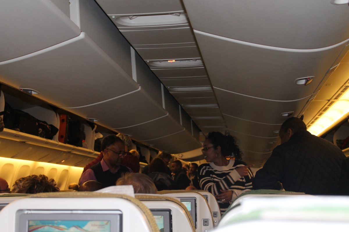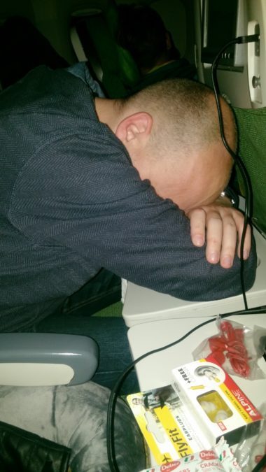 Wir sind ganz schön erschöpft und haben aber noch einen sehr langen Flug vor uns. Hoffentlich bekommen wir ein bisschen Schlaf. Uns fallen hin und wieder Mal die Augen zu.