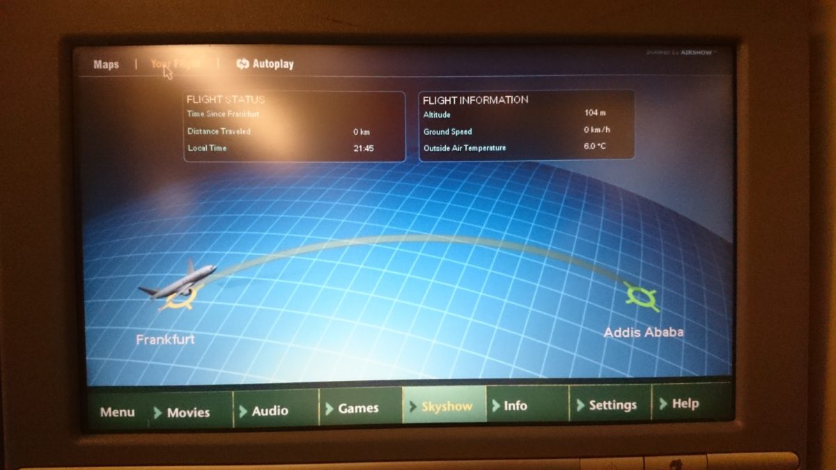 Um ca. 19 Uhr erreichen wir den Frankfurter Flughafen. Wir checken sofort ein. Mit einer leichten Verspätung startet der Flieger mit uns um 22.35 Uhr nach Südafrika, Johannesburg. Kurze Zeit später bekommen wir auch schon eine warme Mahlzeit. So richtig Appetit haben wir jetzt nicht mehr.