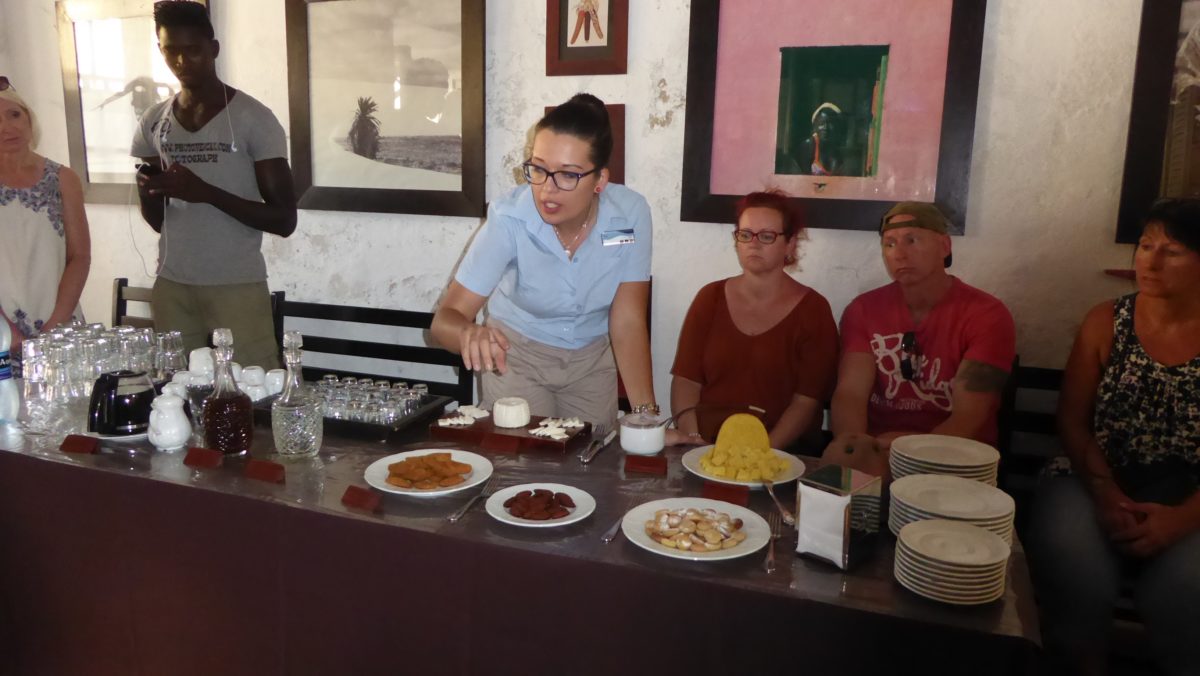 Ich wünsche einen wunderschönen guten Morgen. Wir sind heute so richtig ausgeschlafen. Um 9.30 Uhr gehen wir zum Frühstück. Kann nicht jeder Tag so entspannt beginnen? No Stress. Nach dem Frühstück entspannen wir auf dem Balkon. Für unseren heutigen Tag haben wir eine Tour „Boa Vista – hautnah“ geplant. Um 13.30 Uhr werden wir von einem Bus abgeholt und nach Rabil gebracht. Im „Restaurant Chamine“ werden wir schon von unserer Reiseleiterin Elisa erwartet. Auch einige bekannte Gesichter von den beiden anderen Touren sind dabei. Sofort kommen wir ins Gespräch. Im Restaurant ist eine Verkostung des Nationalgerichtes Cachupa für uns vorbereitet. Cachupa besteht hauptsächlich aus verschiedene Bohnen, Mais, Süßkartoffeln und Maniok. Es ist sehr wohlschmeckend. Anschließend fahren wir nach Sal Rei. Wir sind schon so oft durch Sal Rei spazieren gegangen, trotzdem haben wir nicht alles gesehen bzw. nicht wahrgenommen. Elisa zeigt uns die Markthalle. Hier werden frisches Obst und Gemüse verkauft. Auch afrikanische Händler haben hier einen Platz zum Handeln gefunden. Man erkennt sofort den Unterschied zwischen Afrikanern und Kapverdianern. Die Afrikaner haben eine viel dunklere Hautfarbe und sie sind sehr aufdringlich. Kapverdianer sind eher schüchtern und zurückhaltend. Elisa zeigt uns die Kirche, das Gericht und die Wasserstelle, an der morgens die Frauen aus den Barracas ihre Kanister mit Wasser füllen, um zu kochen, Wäsche zu waschen, um alle häuslichen Arbeiten, die mit Wasser zusammenhängen, zu verrichten. Hier an der Wasserstelle haben die Einwohner die Möglichkeit, ihre Wäsche zu waschen. Ein Abwassersystem so wie wir es kennen, gibt es hier nicht. Einwohner mit einem höheren Einkommen gönnen sich den Luxus, das Wasser direkt nach Hause liefern zu lassen. Wir gehen gemeinsam mit der Gruppe zum Café „Migrante Lodge“. Auch hier haben wir die Möglichkeit einige kapverdische Spezialitäten zu verkosten, unter anderem Ziegenkäse mit Papayamarmelade, Fisch, Hähnchen, Kekse und hochprozentigen Pouch und Grog. Wir haben jetzt noch ein bisschen Freizeit und schauen uns ein wenig um. Anschließend werden wir zum Hotel gebracht. Die Zeit bis zum Abendessen überbrücken wir mit einem Strandspaziergang. Nach dem Abendessen gucken wir noch ein bisschen auf dem Tablet fern. Uns fallen die Augen zu.